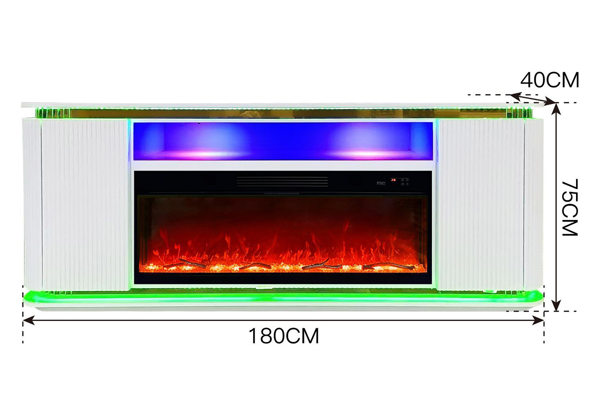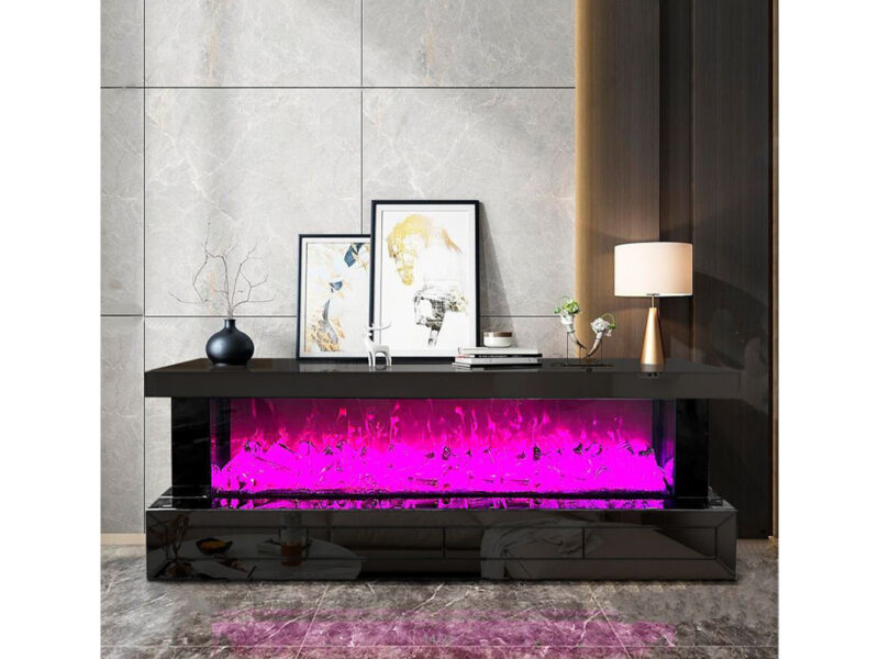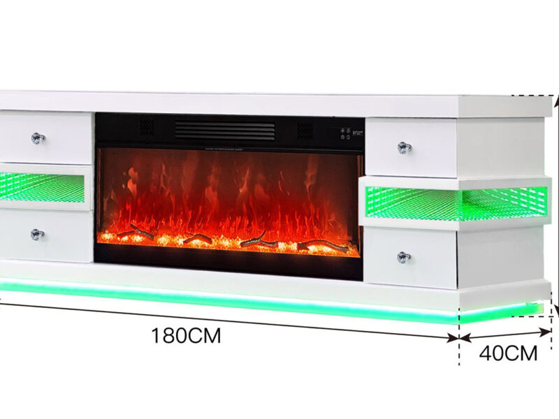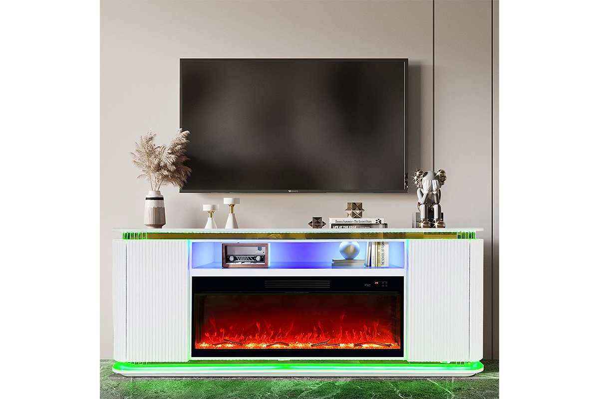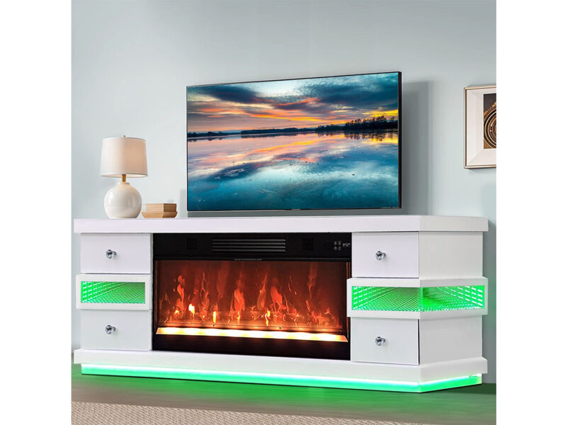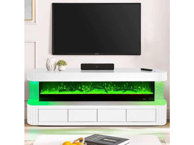 Upgrade your living space with this stylish TV stand featuring a fireplace heater with 13 flame colors, LED lighting, and an integrated Bluetooth speaker. Perfect for adding warmth, ambiance, and modern convenience to any room.