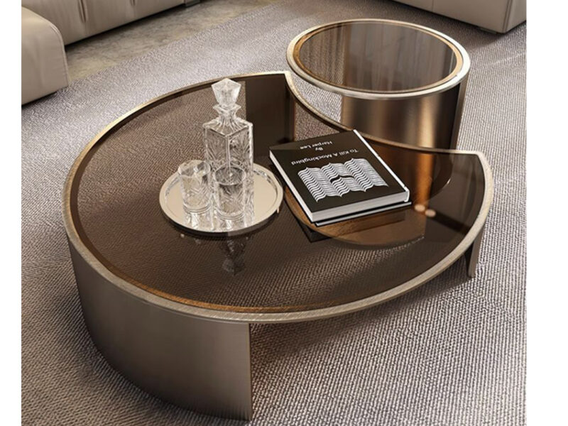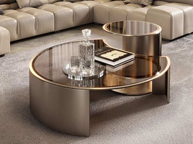 A sleek coffee table with a 360° rotating base—crafted for both style and convenience.
