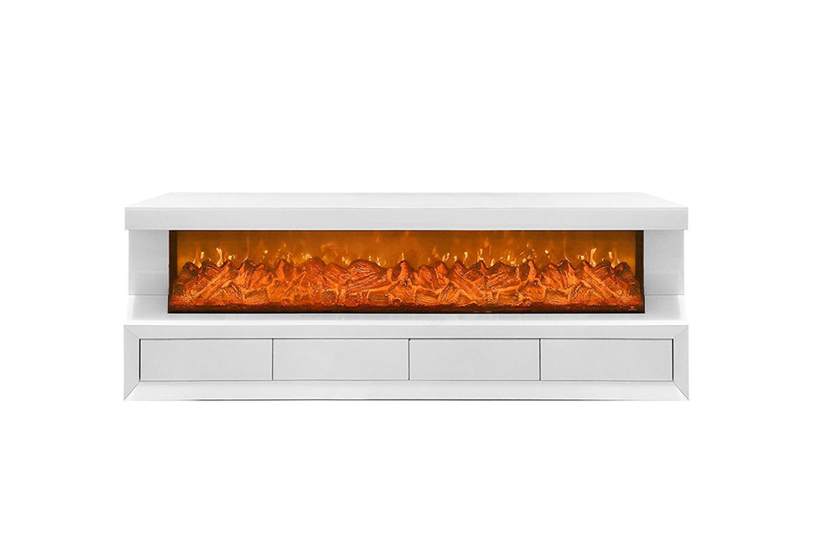 Upgrade your living space with this stylish TV stand featuring a fireplace with 7 flame colors, an integrated Bluetooth speaker, and 4 spacious drawers for convenient storage. Perfect for combining comfort, entertainment, and organization.