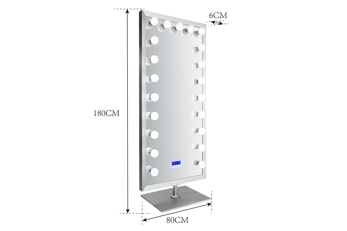 LED Full Length Mirror with Bluetooth Speaker – 360° Rotating Stainless Steel Frame
