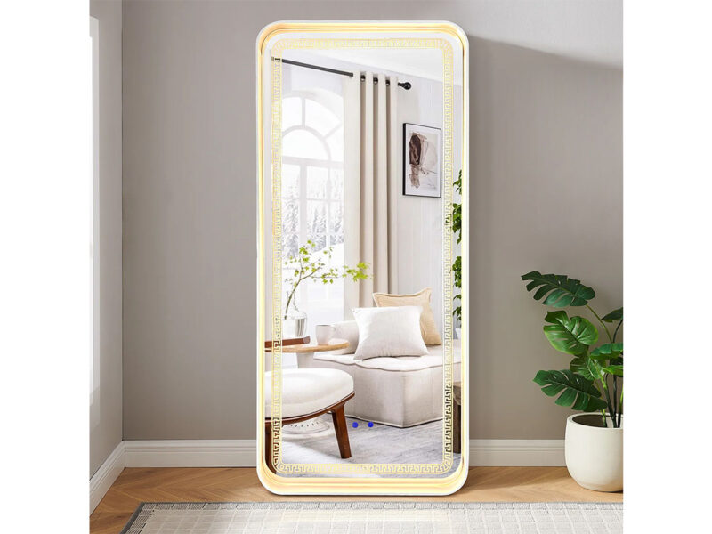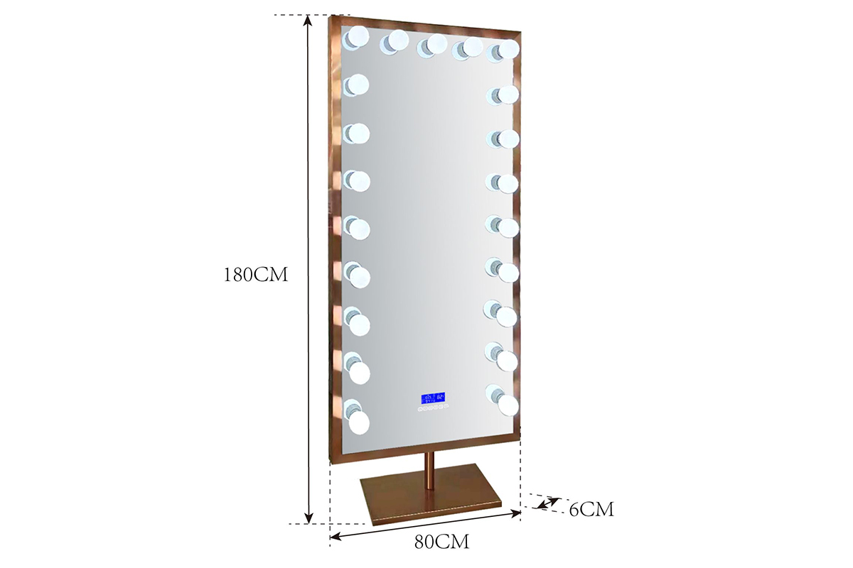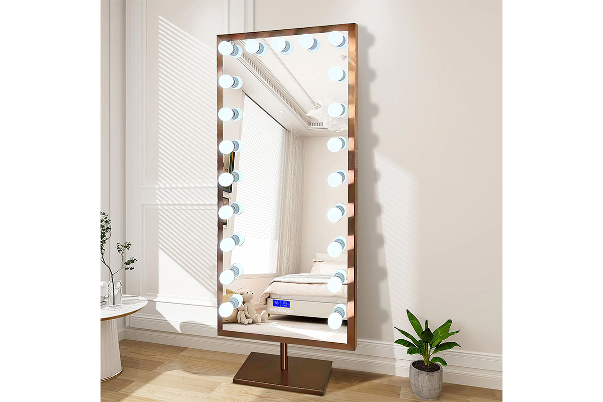 LED Full Length Mirror with Bluetooth Speaker – 360° Rotating Stainless Steel Frame